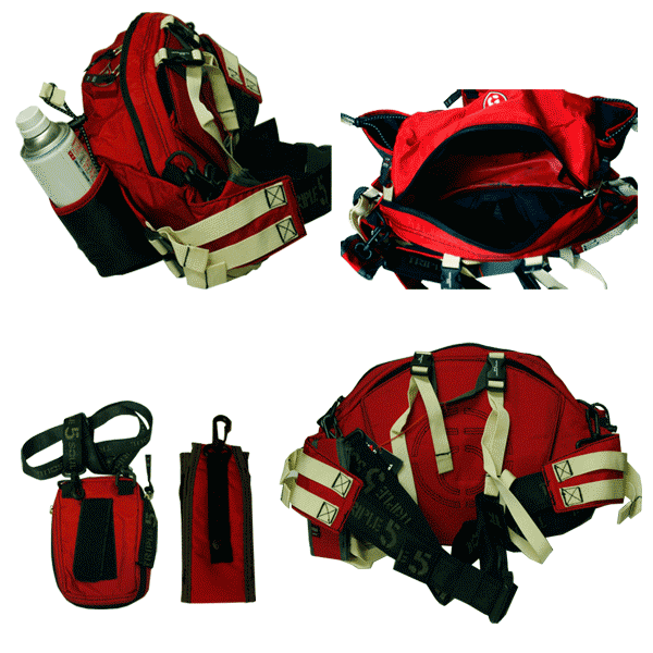 両サイドのドリンク入れ、ミニショルダー、携帯ケースに 小分け収納できる便利なウエストバッグです。