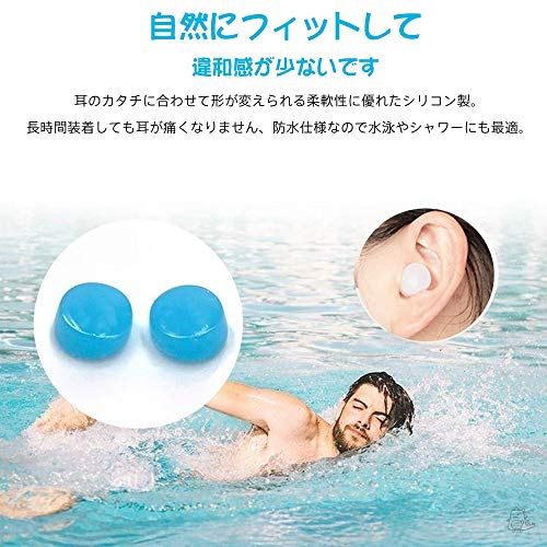 耳栓 安眠 防音 3ペア ソフトシリコーン耳栓 水洗い可能 繰り返し使用可能睡眠 水泳 飛行機 仕事 勉強 ケース付き 防水 (ブルー)