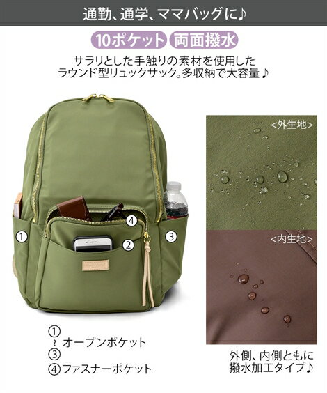 Legato Largo(レガートラルゴ)10ポケット両面はっ水デイパック(A4対応) ニッセン nissen ブラック グレーベージュ カーキ ネイビー テラコッタ カラー ブラック/グレーベージュ/カーキ/ネイビー/テラコッタ サイズ Y 素材 材質=ポリエステル サイズ=たて約43×よこ約25×まち幅約14cm 開閉=Wファスナー ポケット=中:5個(オープン×4、ファスナー×1) 外:5個(オープン×3、ファスナー×2) 肩ひも長さ=(約)41〜84cm 調節可 重量=約445g 原産国 中国製 メーカー品番 ZZY4320A2695 コメント 両面はっ水×10ポケット!!A4サイズのラウンドリュックサック♪